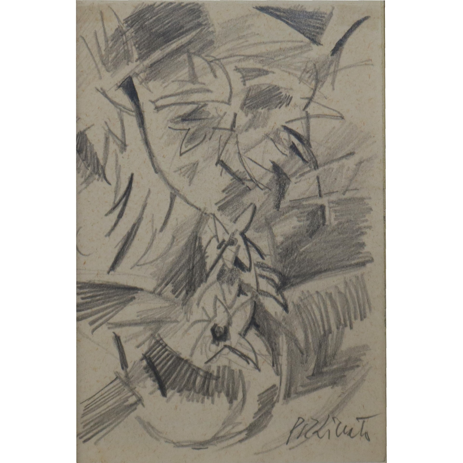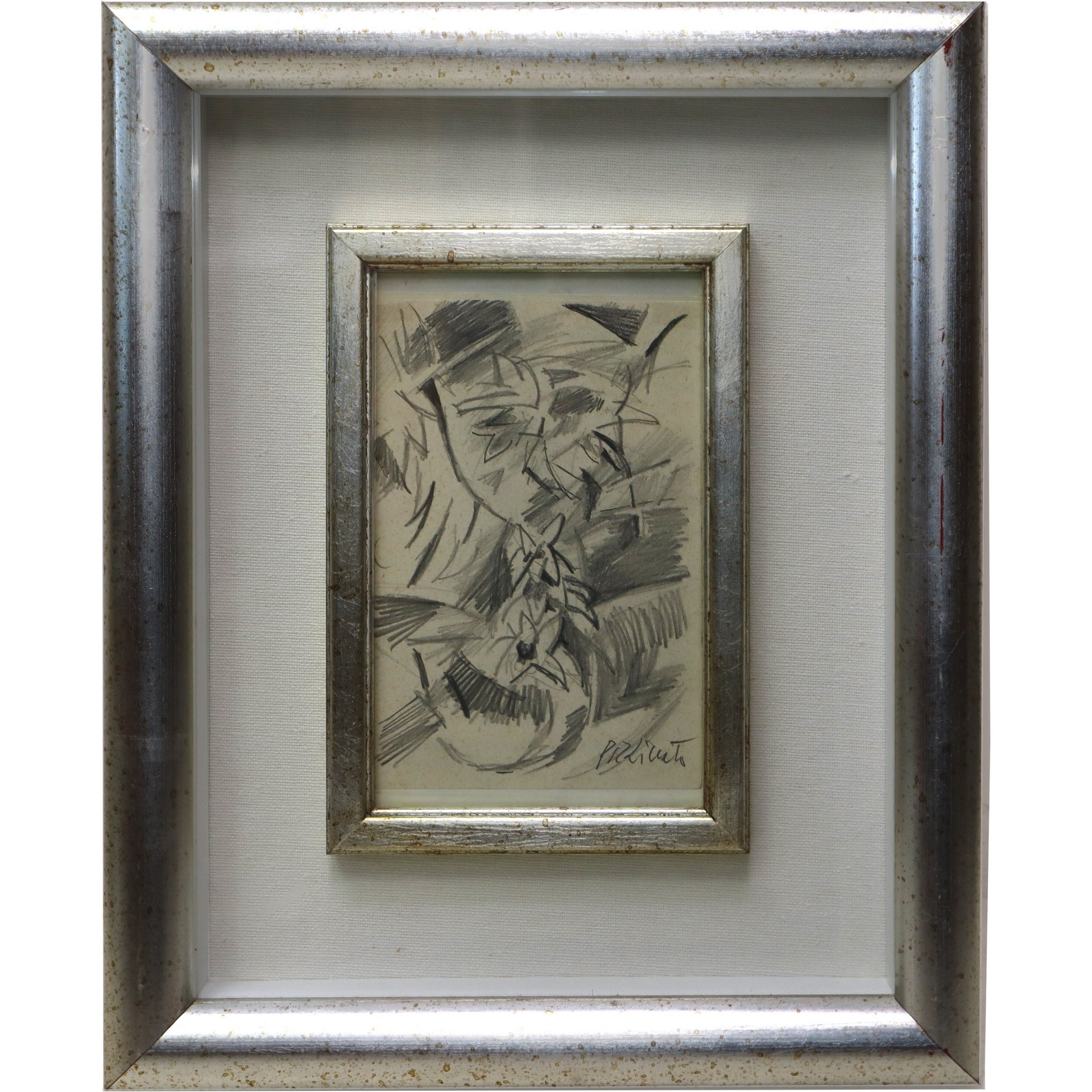 Armando Pizzinato - Fiori Cm 14 x 10 , in cornice 32 x 36 Matita su carta Lettera autografa dell'artista al retro