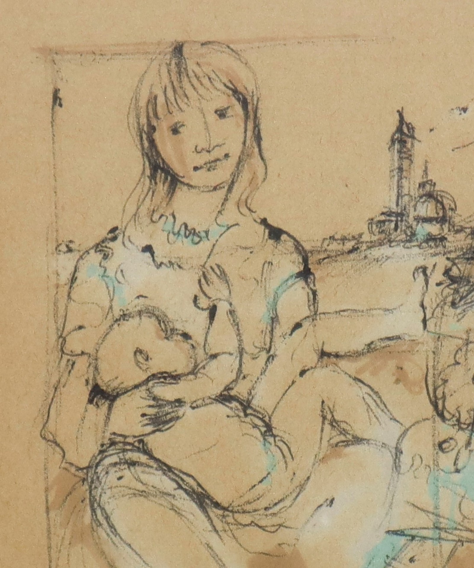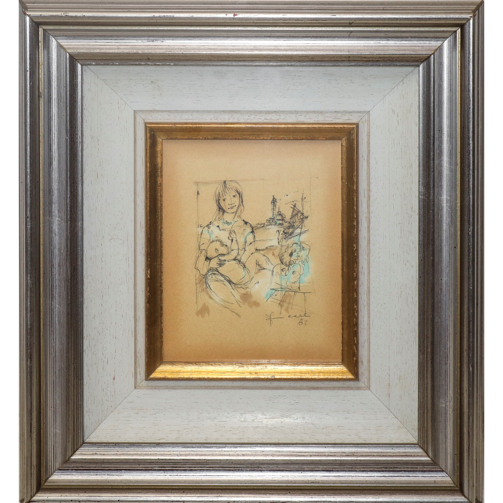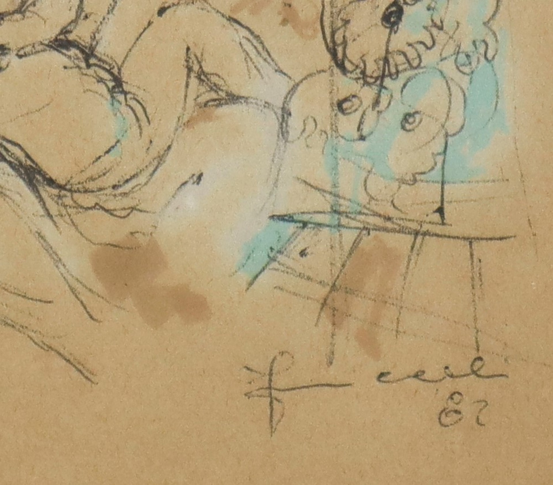 Franco Miccoli - Maternità, 1982 Cm 15 x 12 , in cornice 34 x 30 Acquerello su carta Firma e data in basso a destra sul fronte
