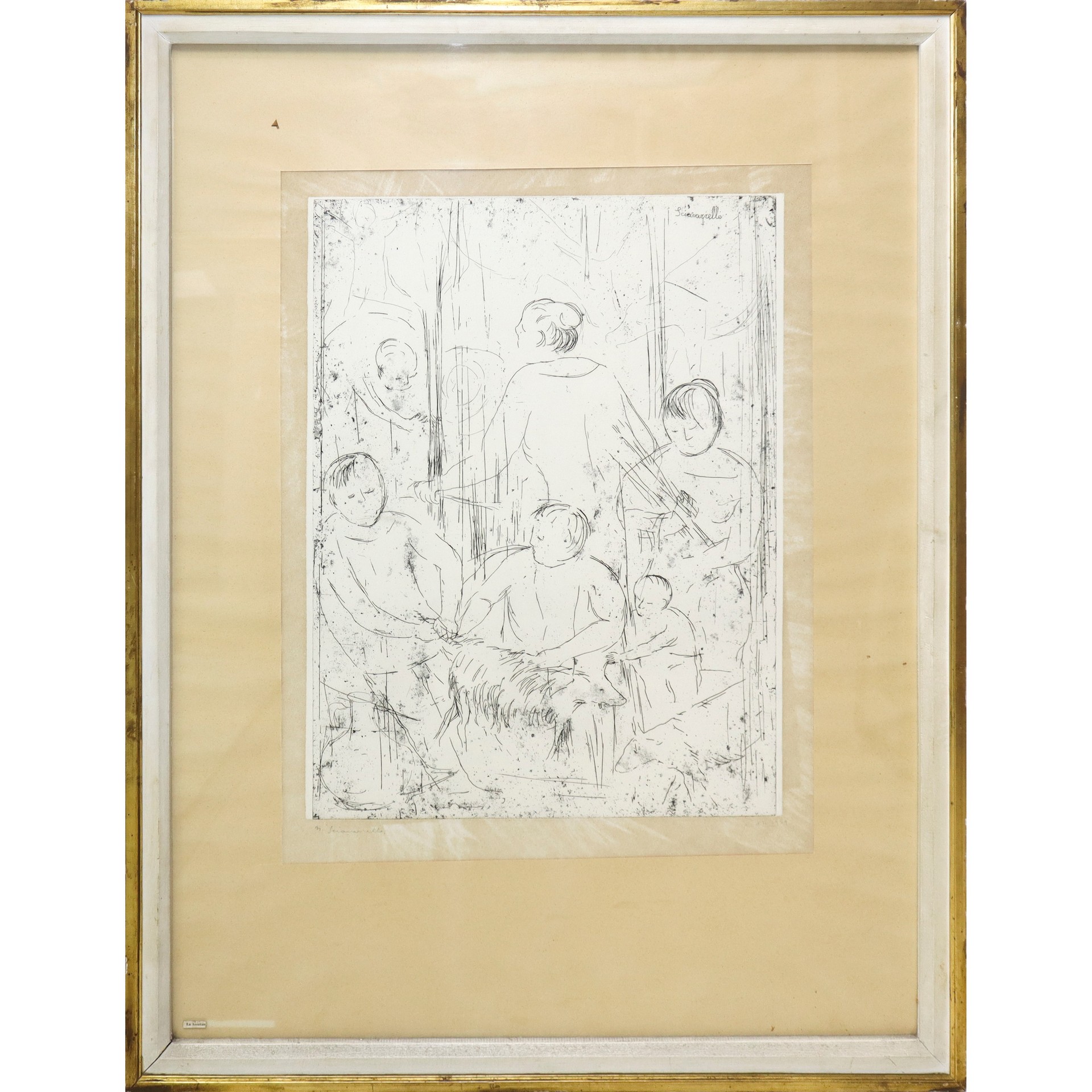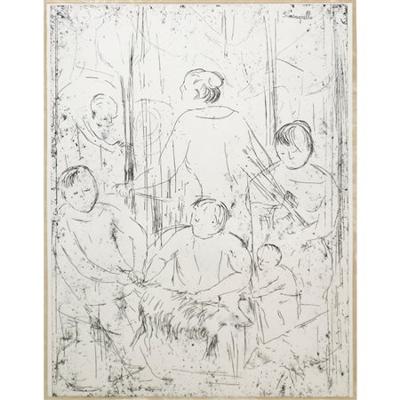 Nunzio Sciavarello (Bronte 1918-Catania 2013) - La Tosatura, Prova d'Autore, 1959 cm 50x37,5 in cornice cm 87x66 Firmato in basso a siistra e sulla destra Prova d'autoreFirmato in basso a siistra e sulla destra Prova d'autore
