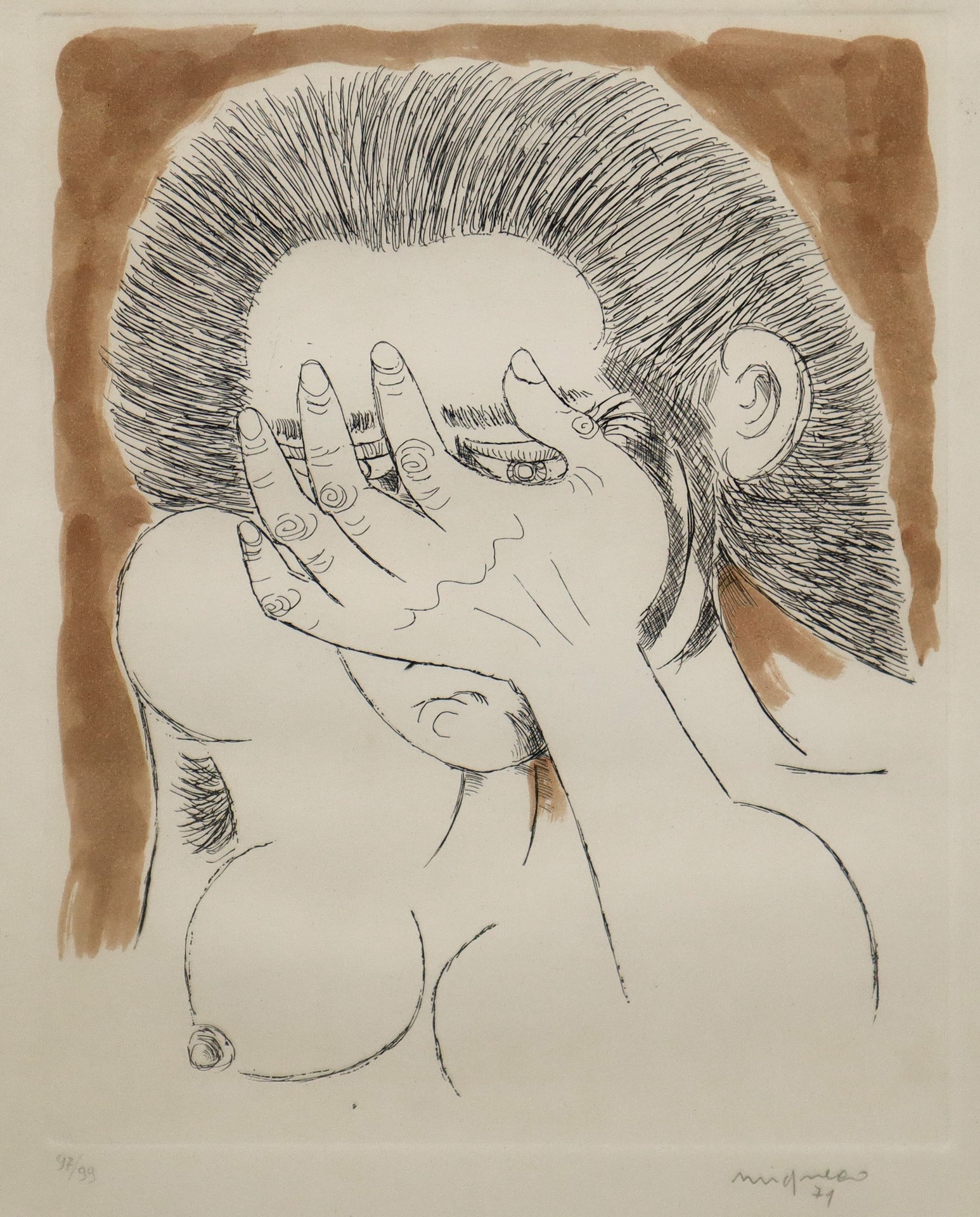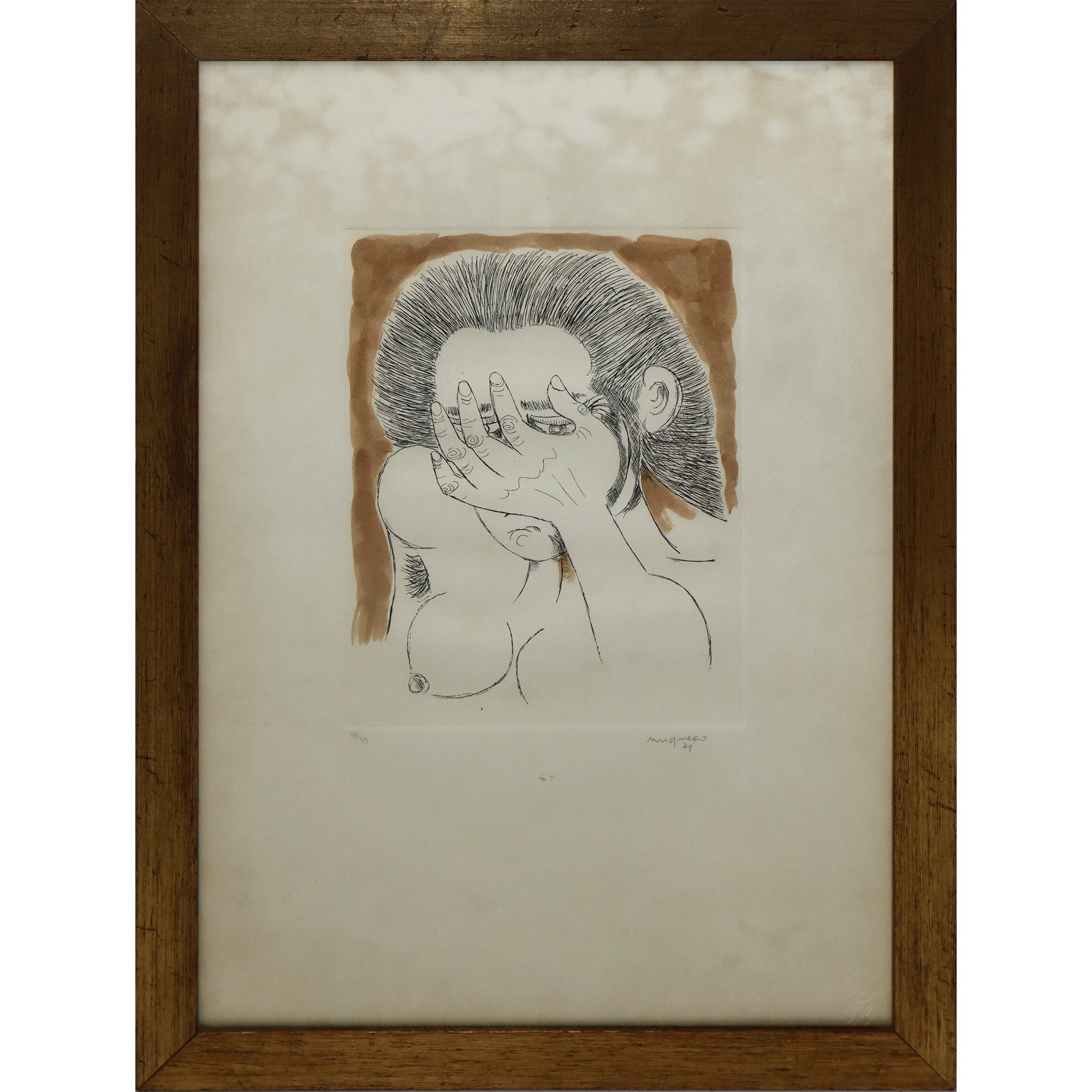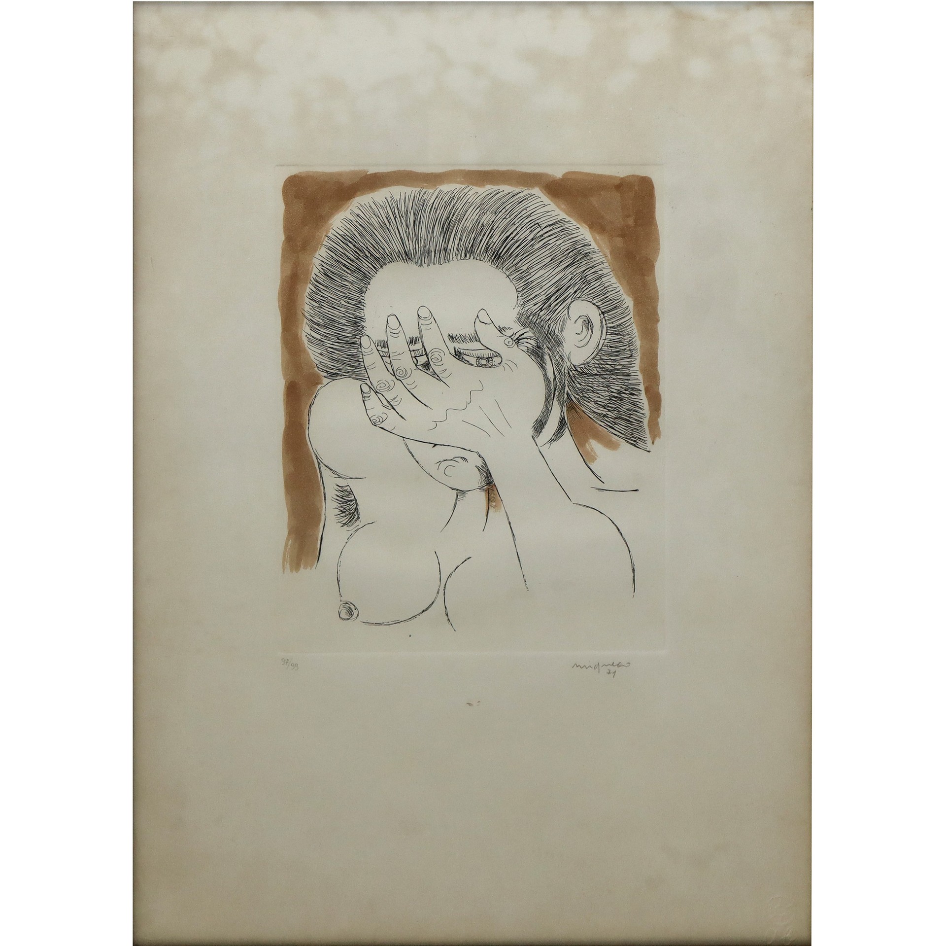 Giuseppe Migneco (Messina 1903-Milano 1997) - Viso di donna nascosto dalla mano cm 69 x 51 Litografia su cartoncino n 97/99 Firmata Migneco e datata 71 a destra.