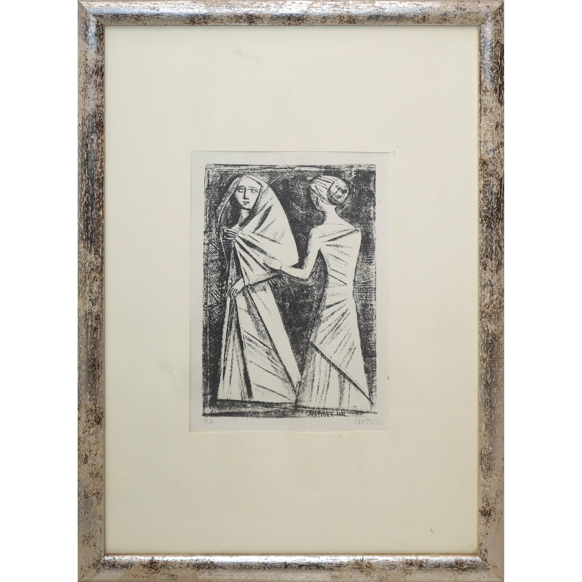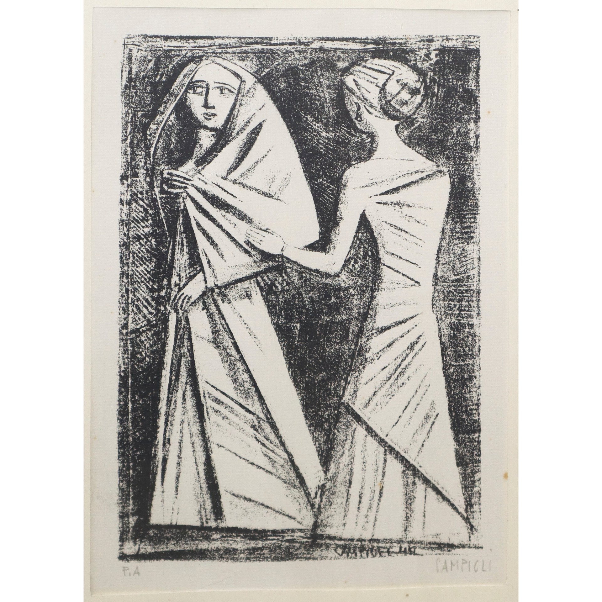 pseudonimo di Max Ihlenfeld Massimo Campigli (Berlino 1895-Saint Tropez 1981) - Donne cm 25x17 in cornice cm 52x36 Grafica Prova d'autore, firmata in basso a destra