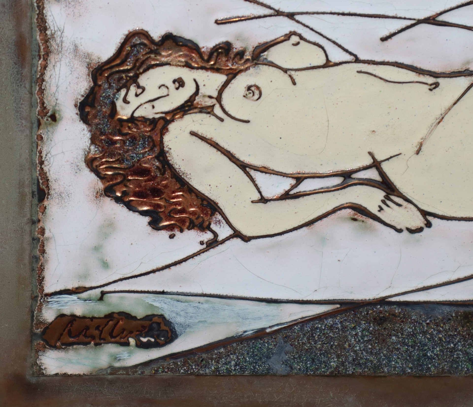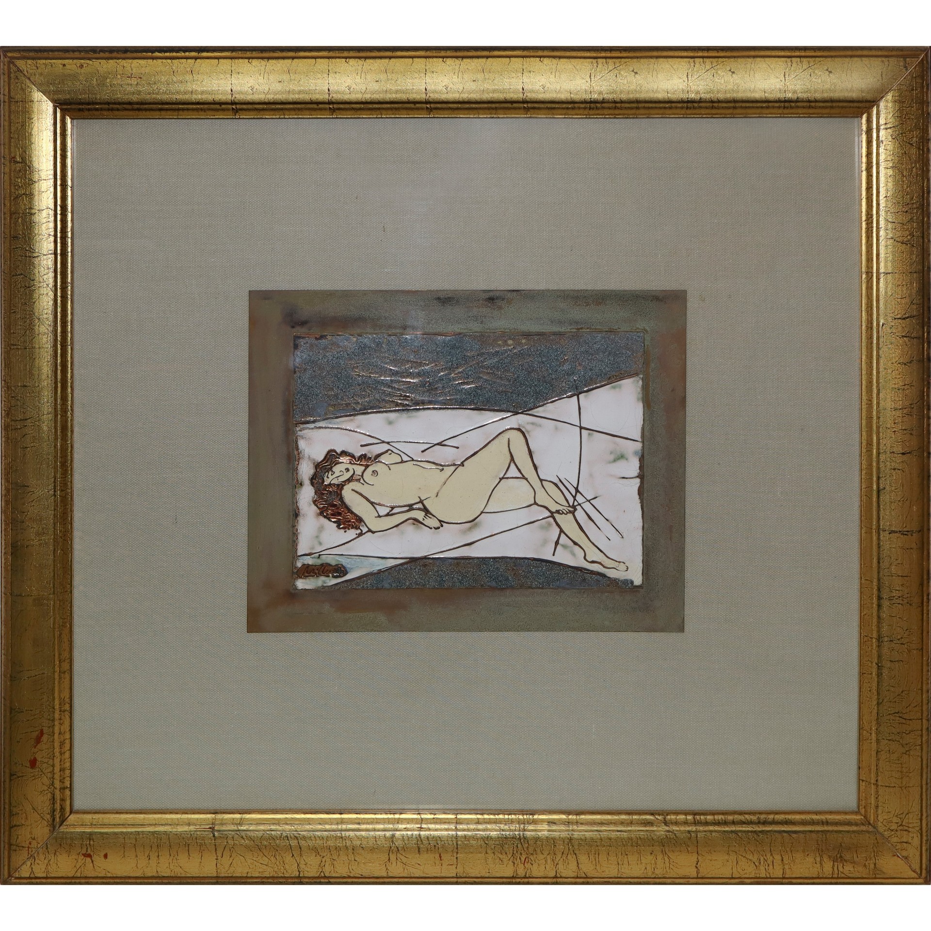 Sebastiano Milluzzo (Catania 1915-Catania 2011) - Nudo di donna cm 21x27,5 in cornice cm 52x58 smalto su rame Firmato in basso a sinistra