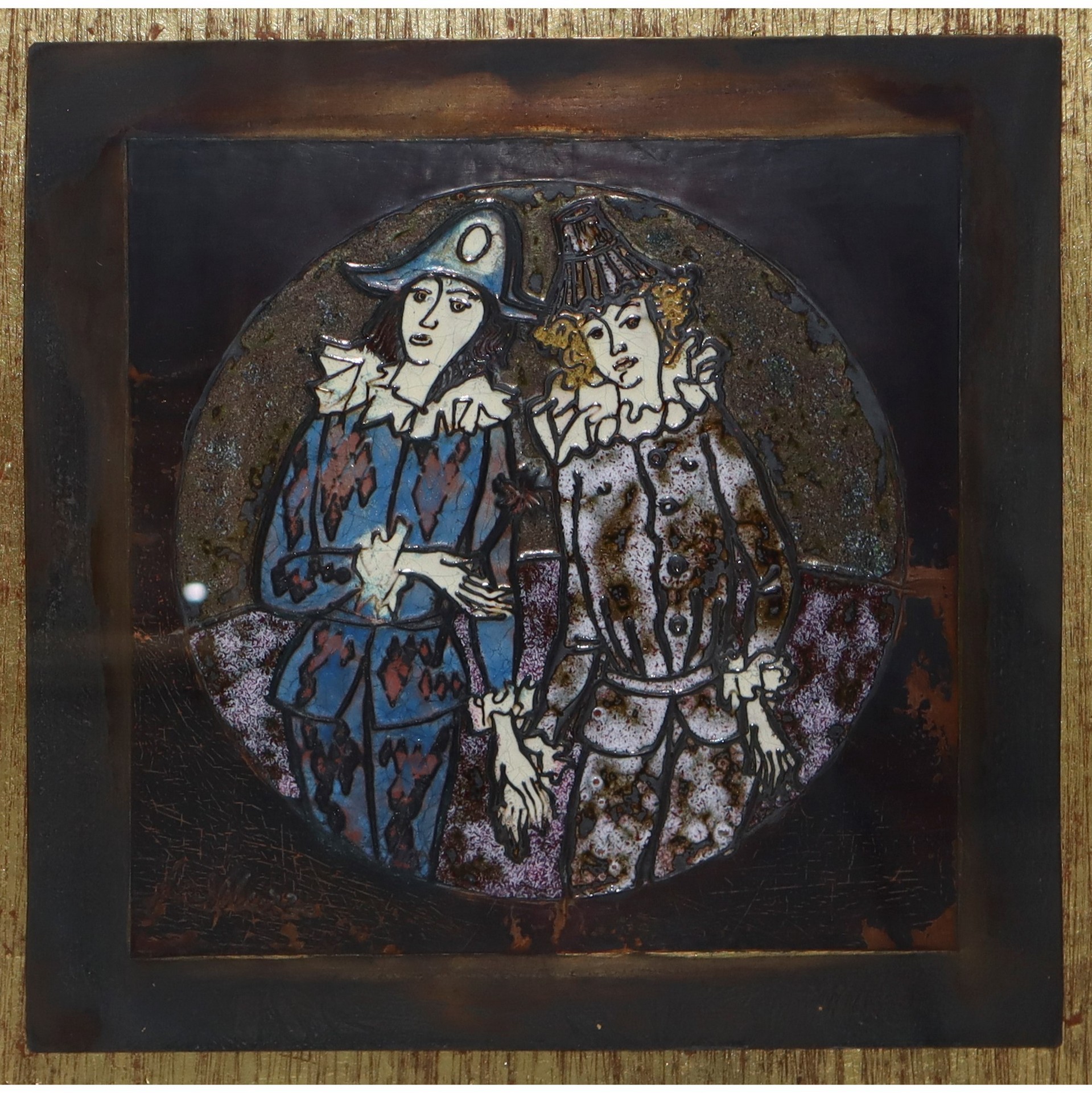 Sebastiano Milluzzo (Catania 1915-Catania 2011) - Coppia di figure in maschera di Carnevale cm 16x16 in cornice cm 40x40 Firmato in basso a sinistra Firmato in basso a sinistra
