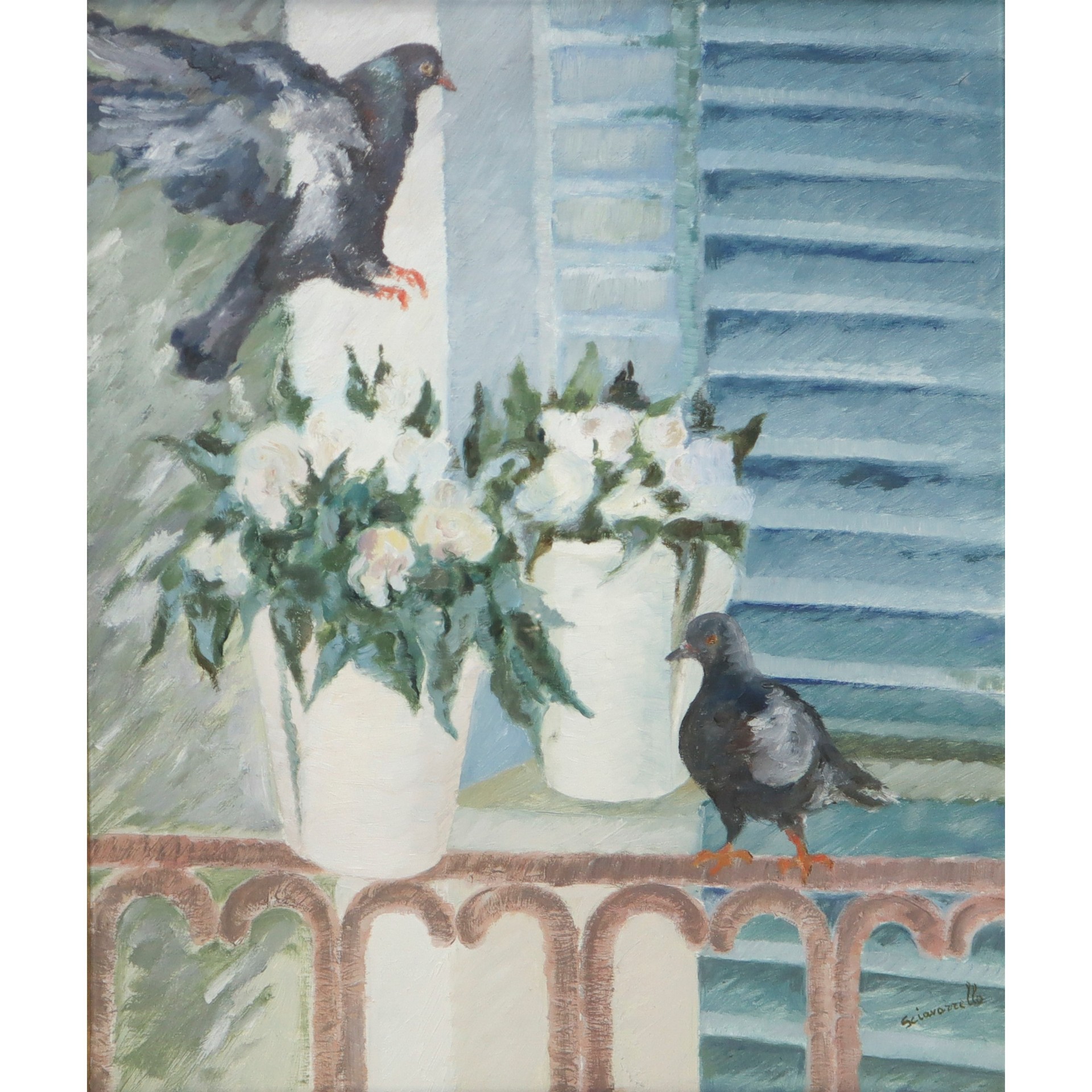 Lot 252 | Nunzio Sciavarello (Bronte 1918-Catania 2013) - Vasi di fiori con colombe