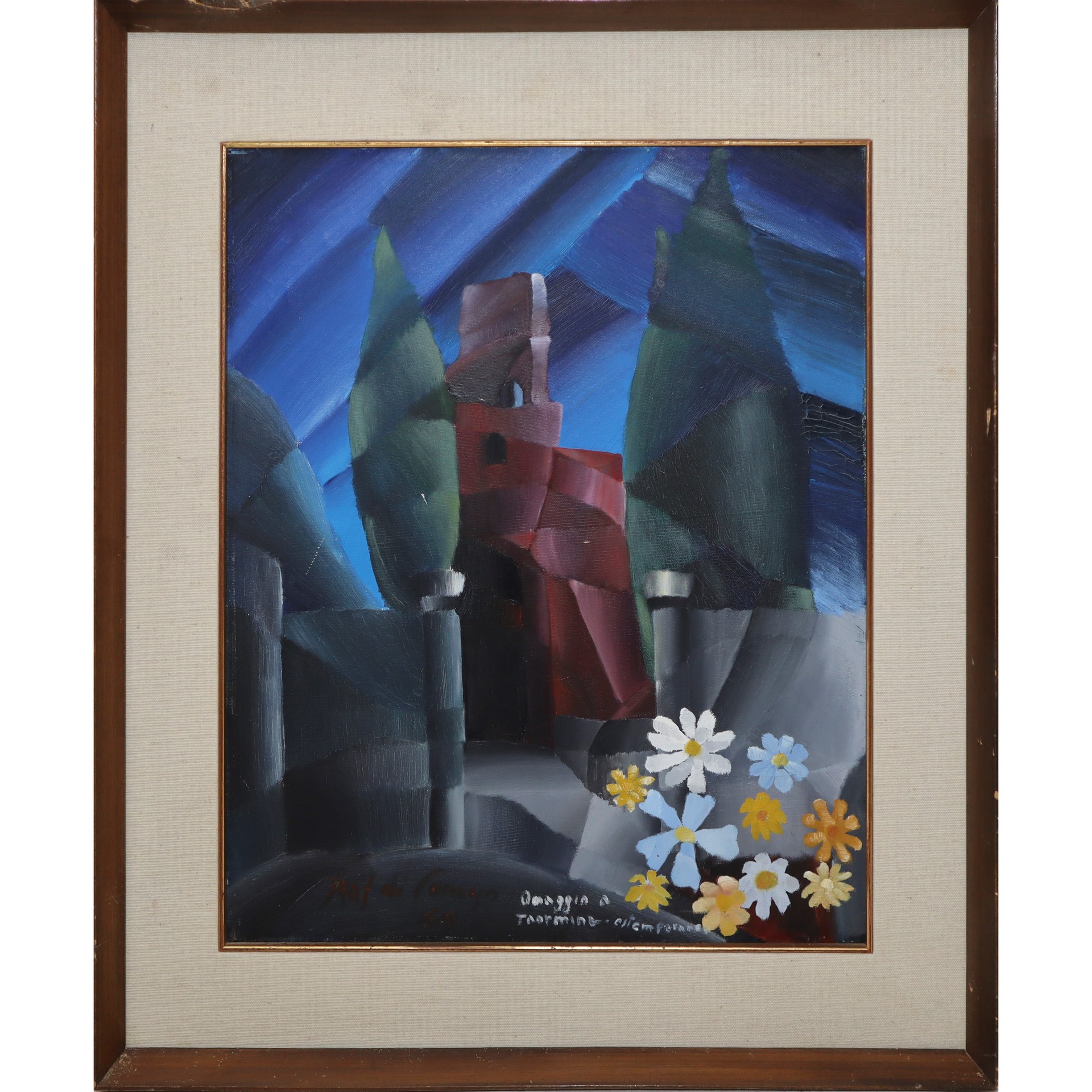 Raf Occhipinti (Comiso 1933) - Alberi, Omaggio a Taormina h cm 50 x 40, in cornice 64 x 54 Olio su tela Firmato in basso a sinistra e datato 69