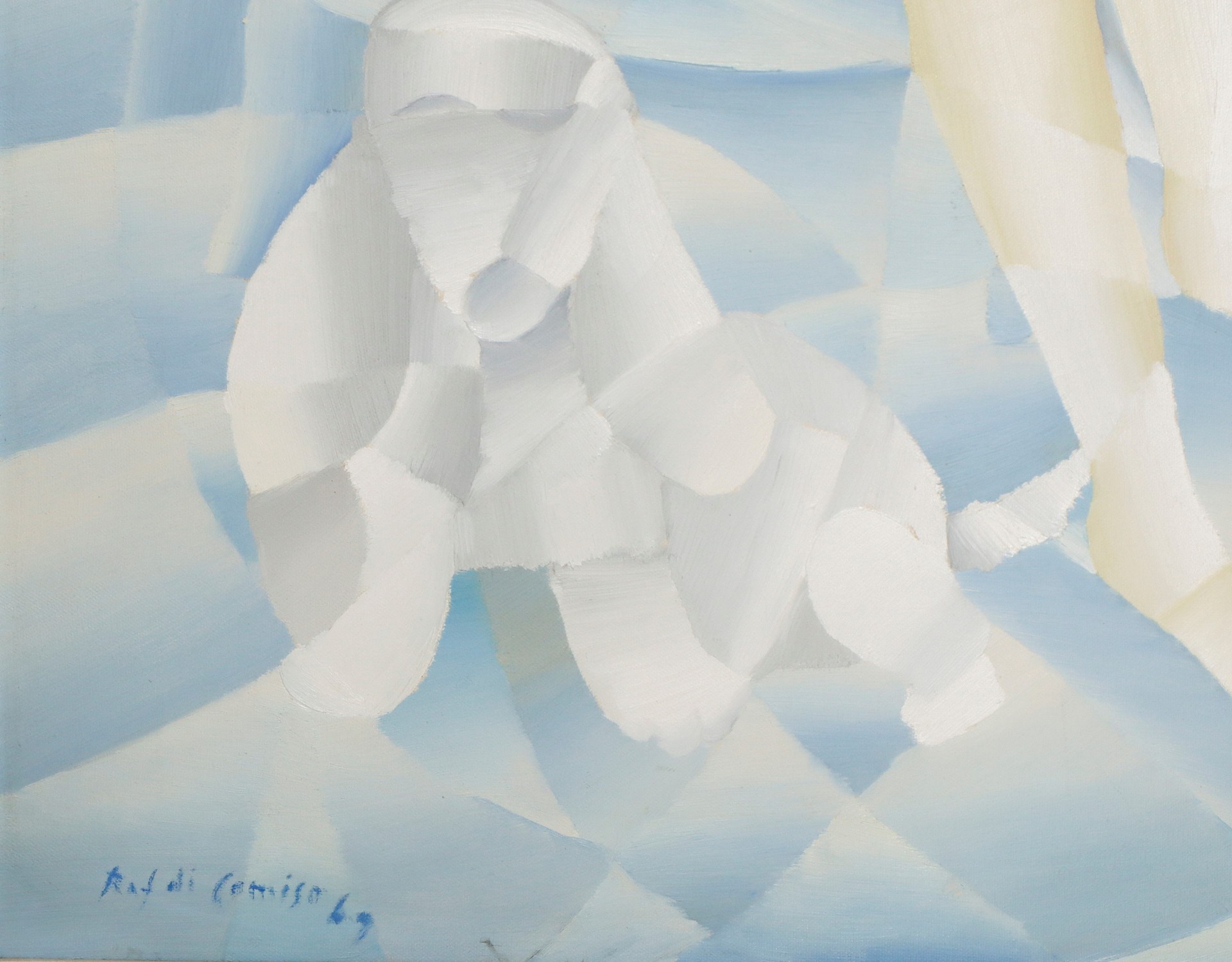 Raf Occhipinti (Comiso 1933) - Donna con chitarra e fiori, foro alla tela
