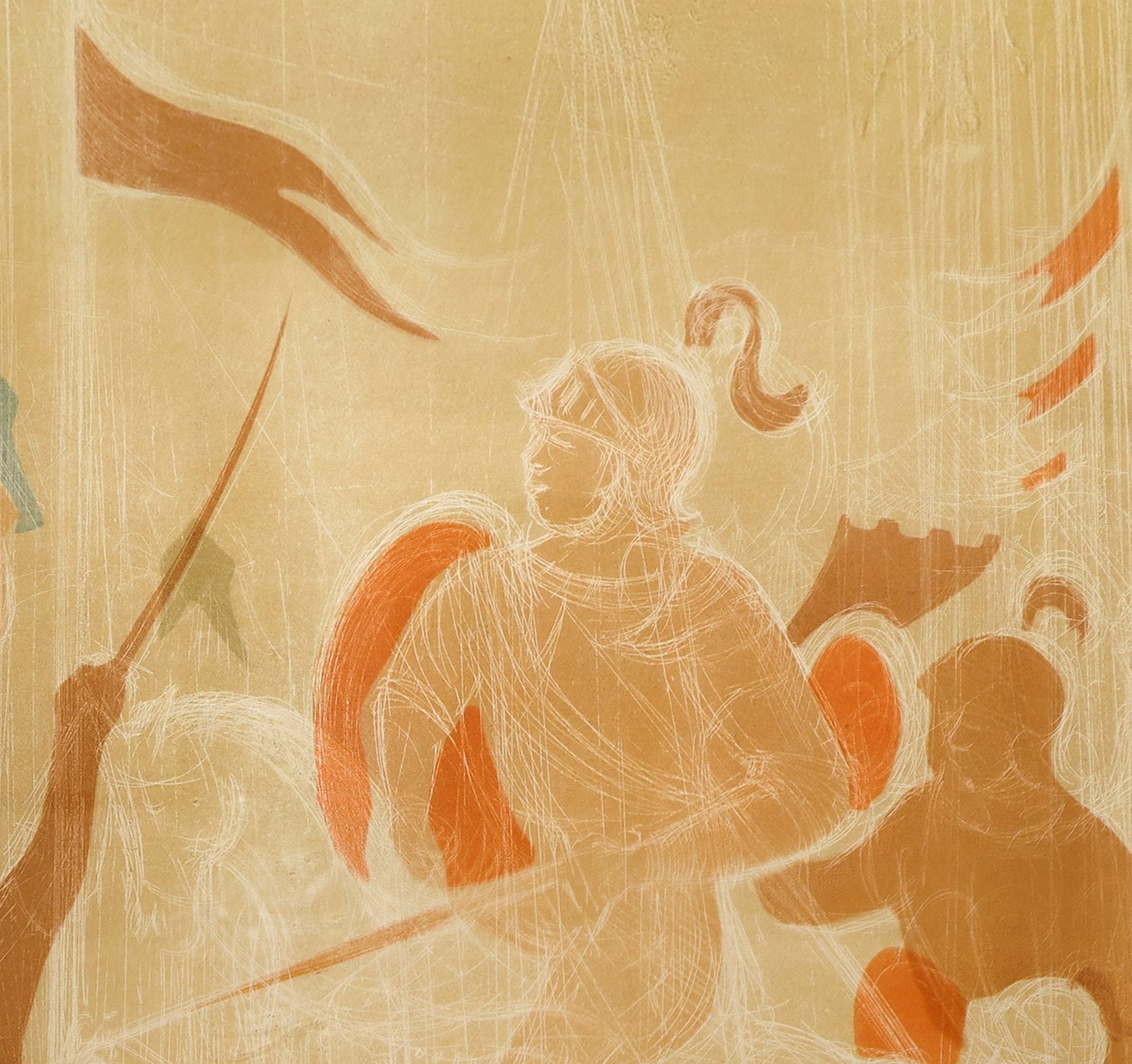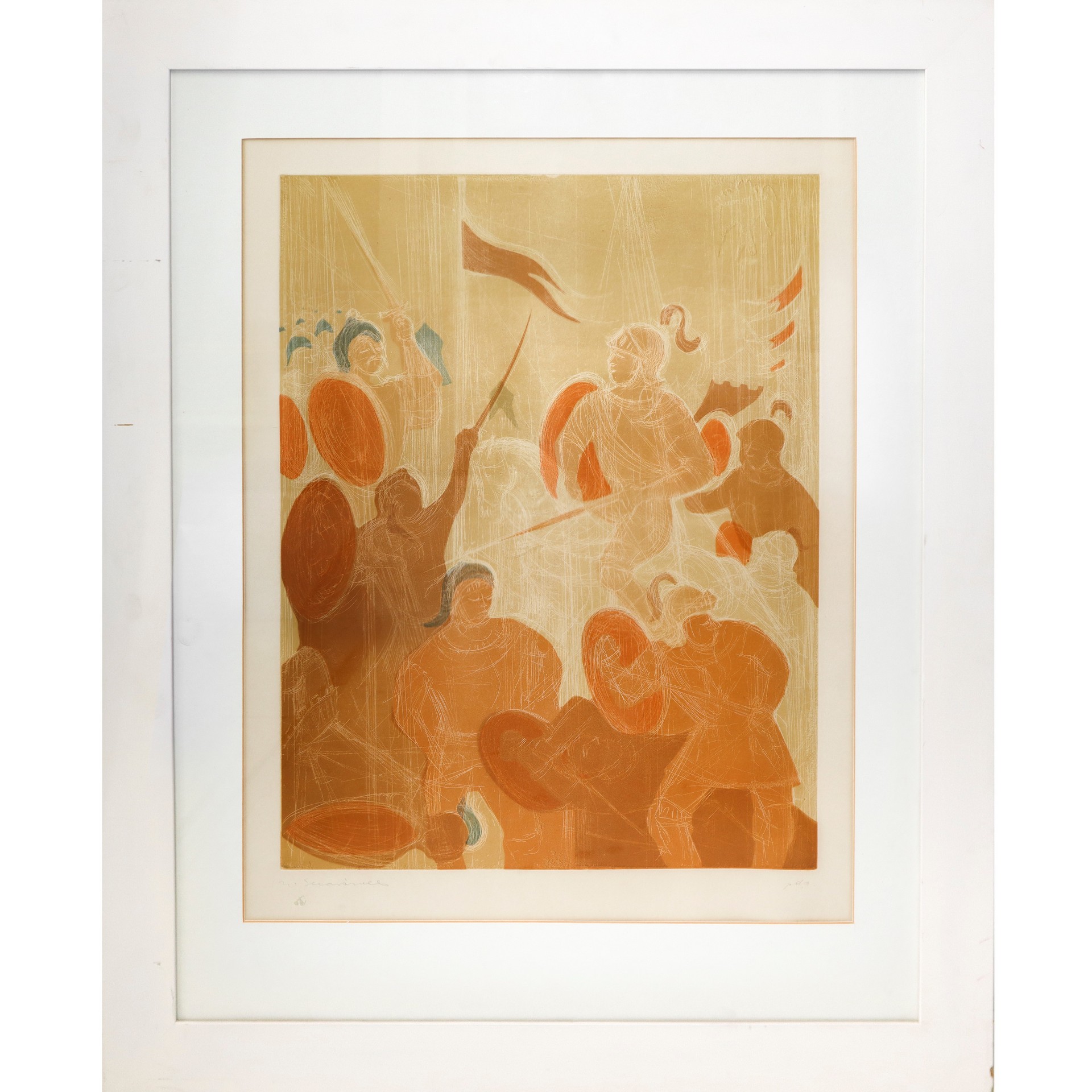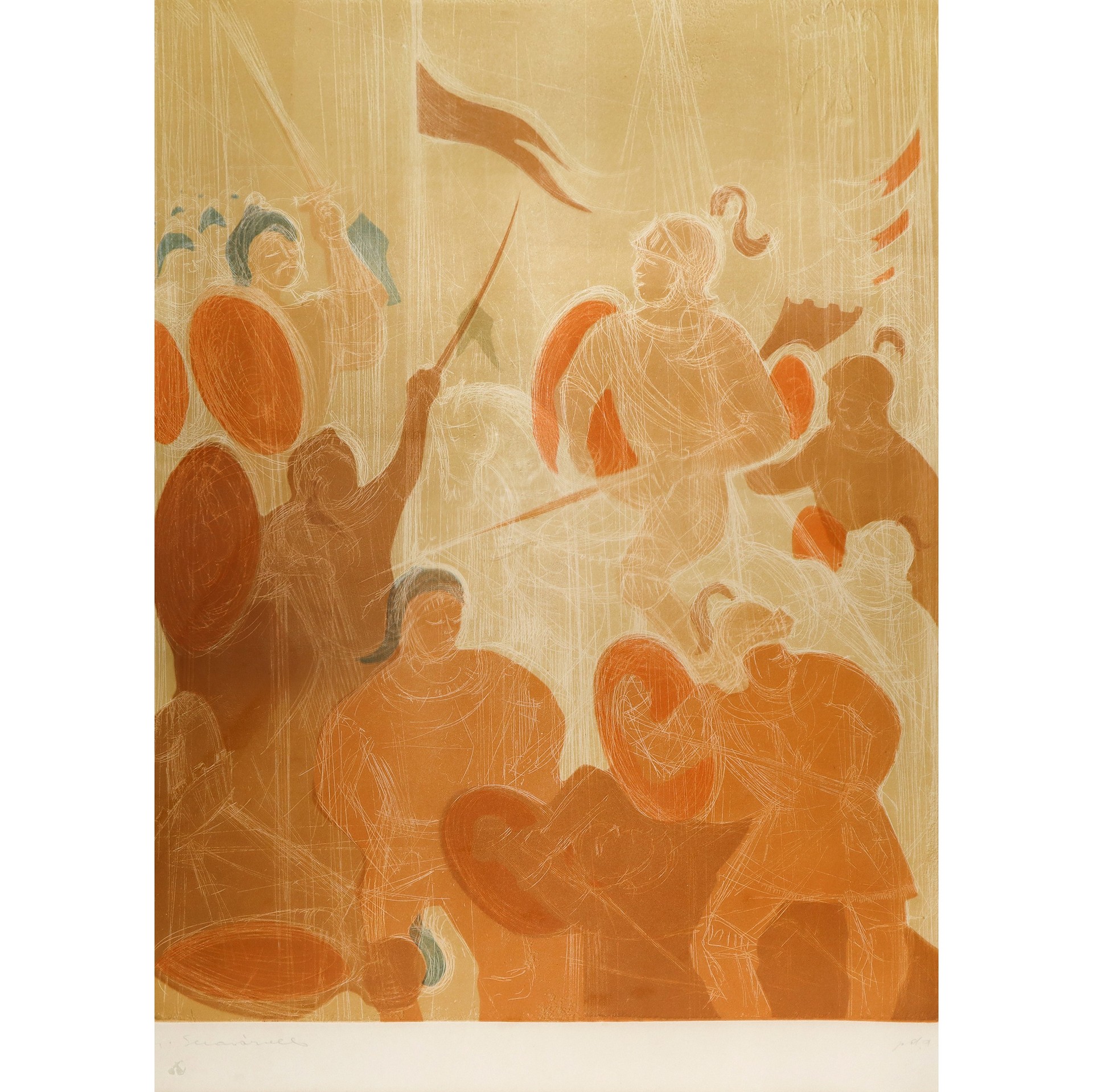 Nunzio Sciavarello (Bronte 1918-Catania 2013) - Paladini 73x56, in cornice cm 103x82 Serigrafia Prova d'autore