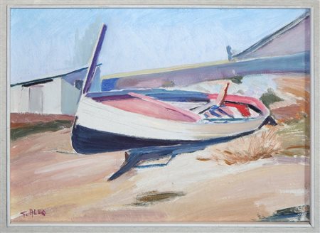 Giuseppe Aleo - Barca a secco cm 29 x cm 39, in cornice cm 48 x cm 58 Olio su tela Firmato in basso a sinistra