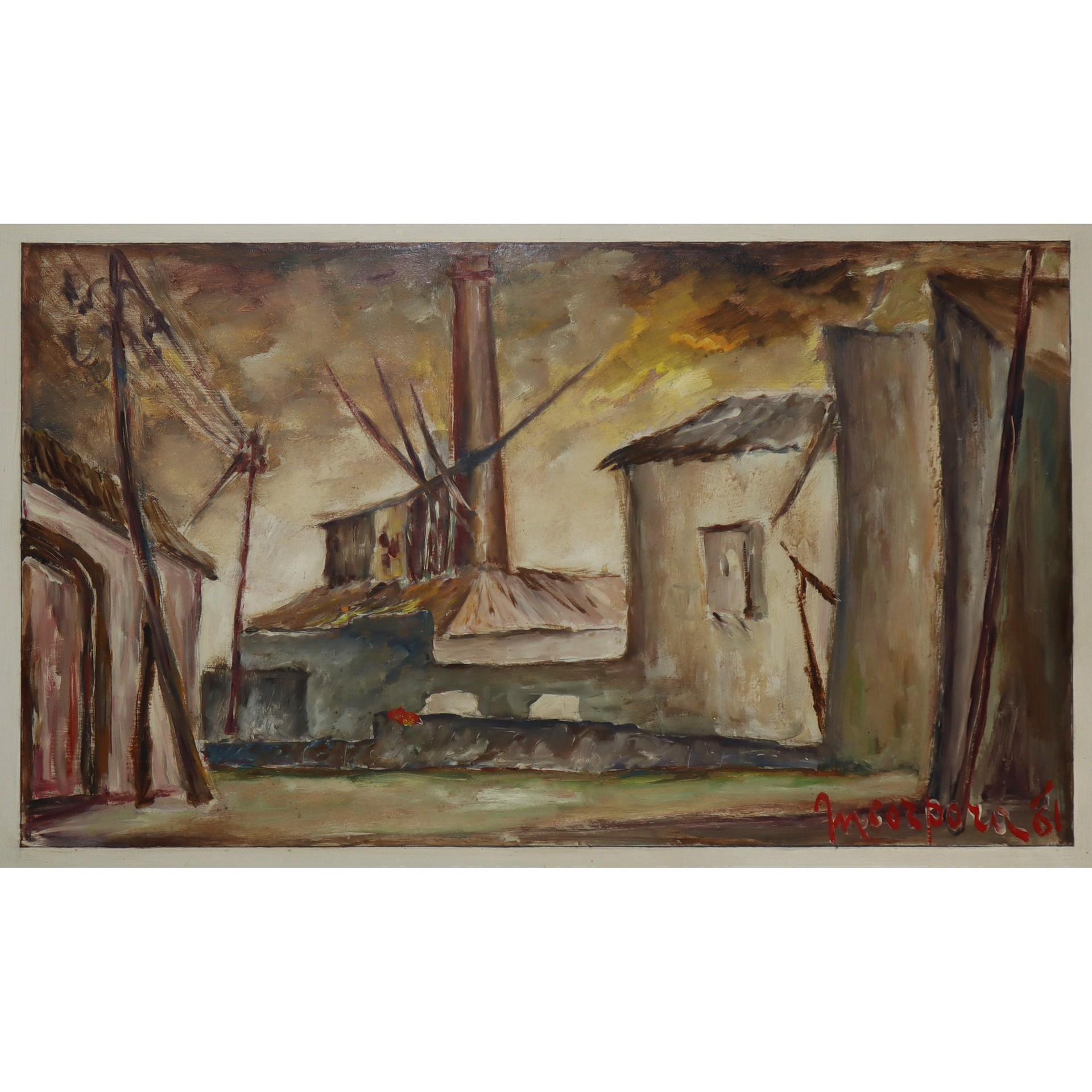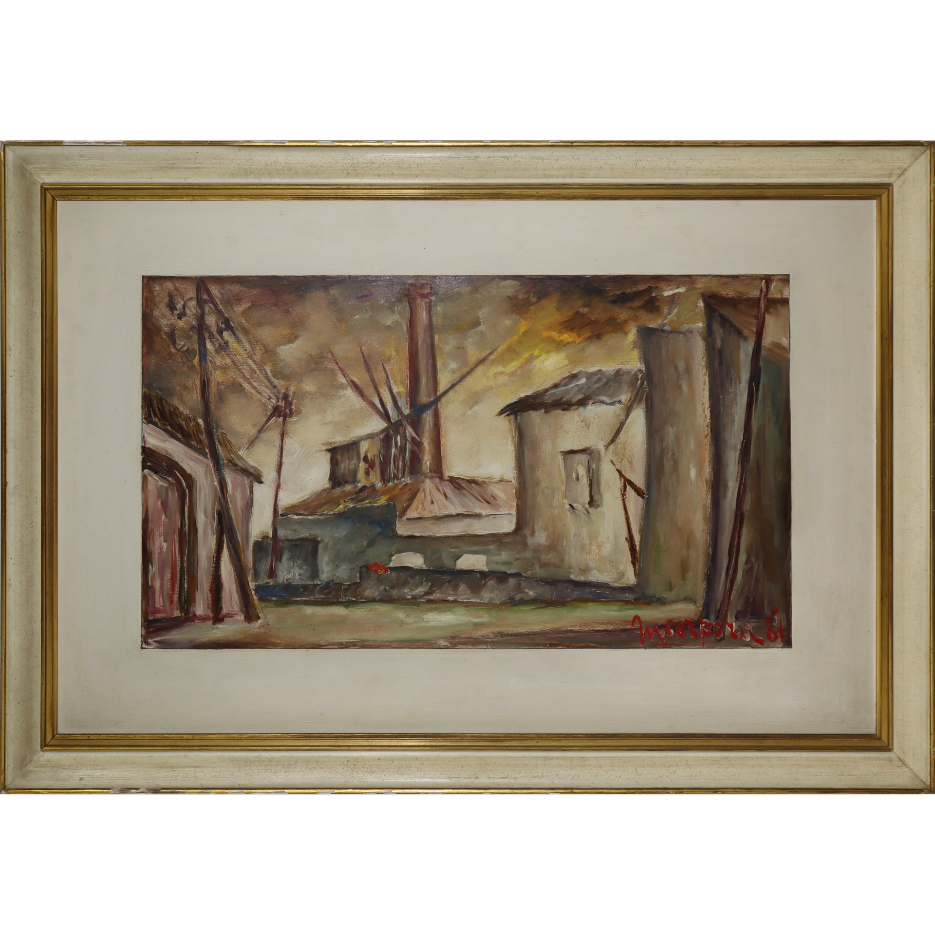 Salvatore Incorpora - Case con ciminiera, 1961 60x90, in cornice 70x100 olio su masonite Firmato in basso a destra e datato Incorpora 61