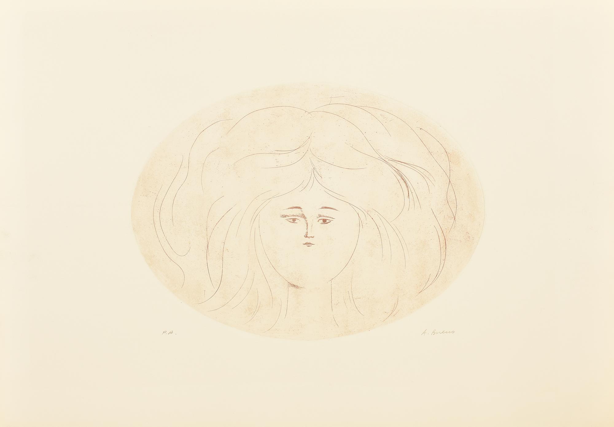 Antonio Bueno RITRATTO SU SFONDO ROSSO incisione su carta, battuta cm 30x40,...