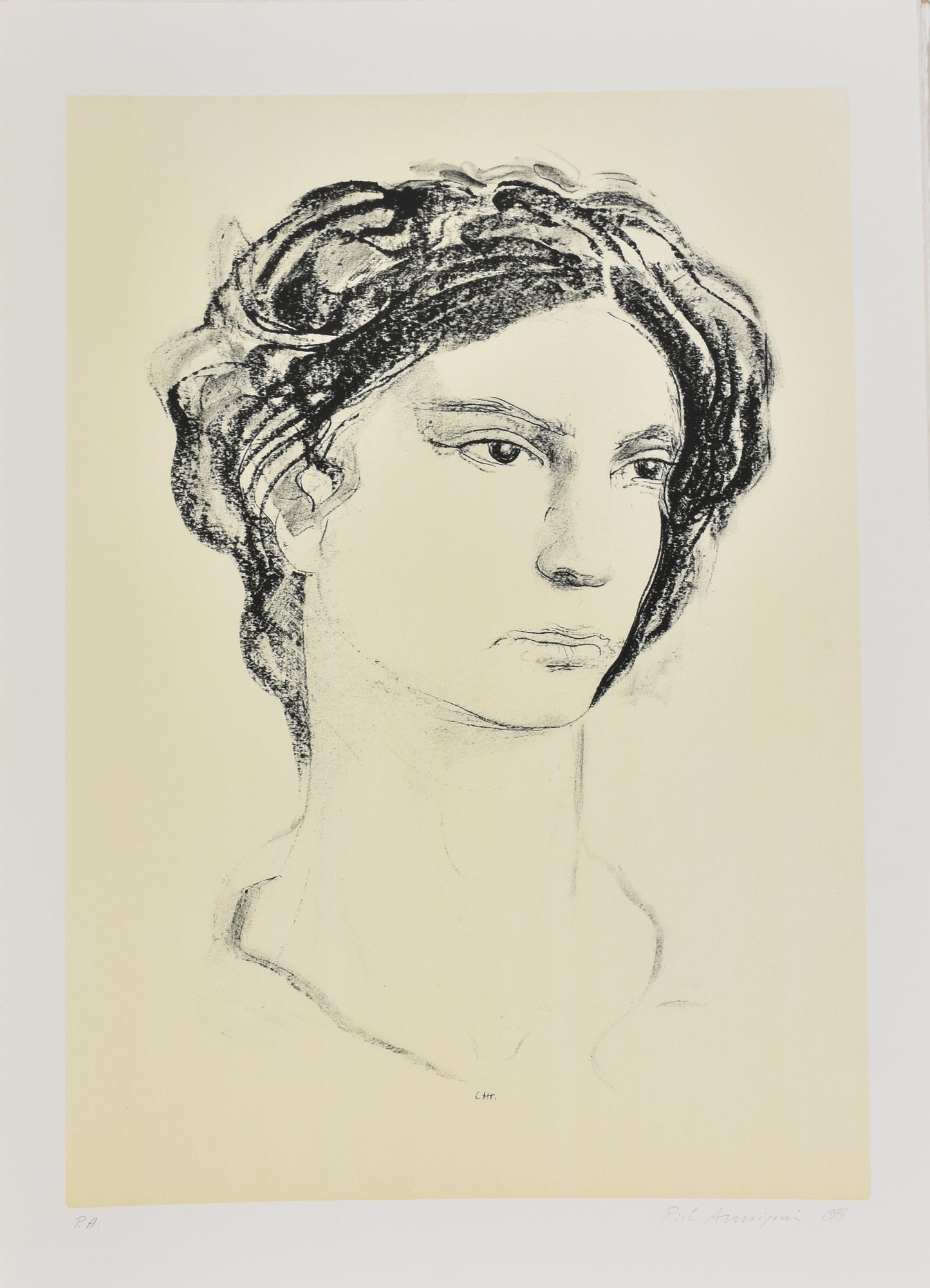 Pietro Annigoni RITRATTO litografia su carta, cm 70x50; es. P.A. firma