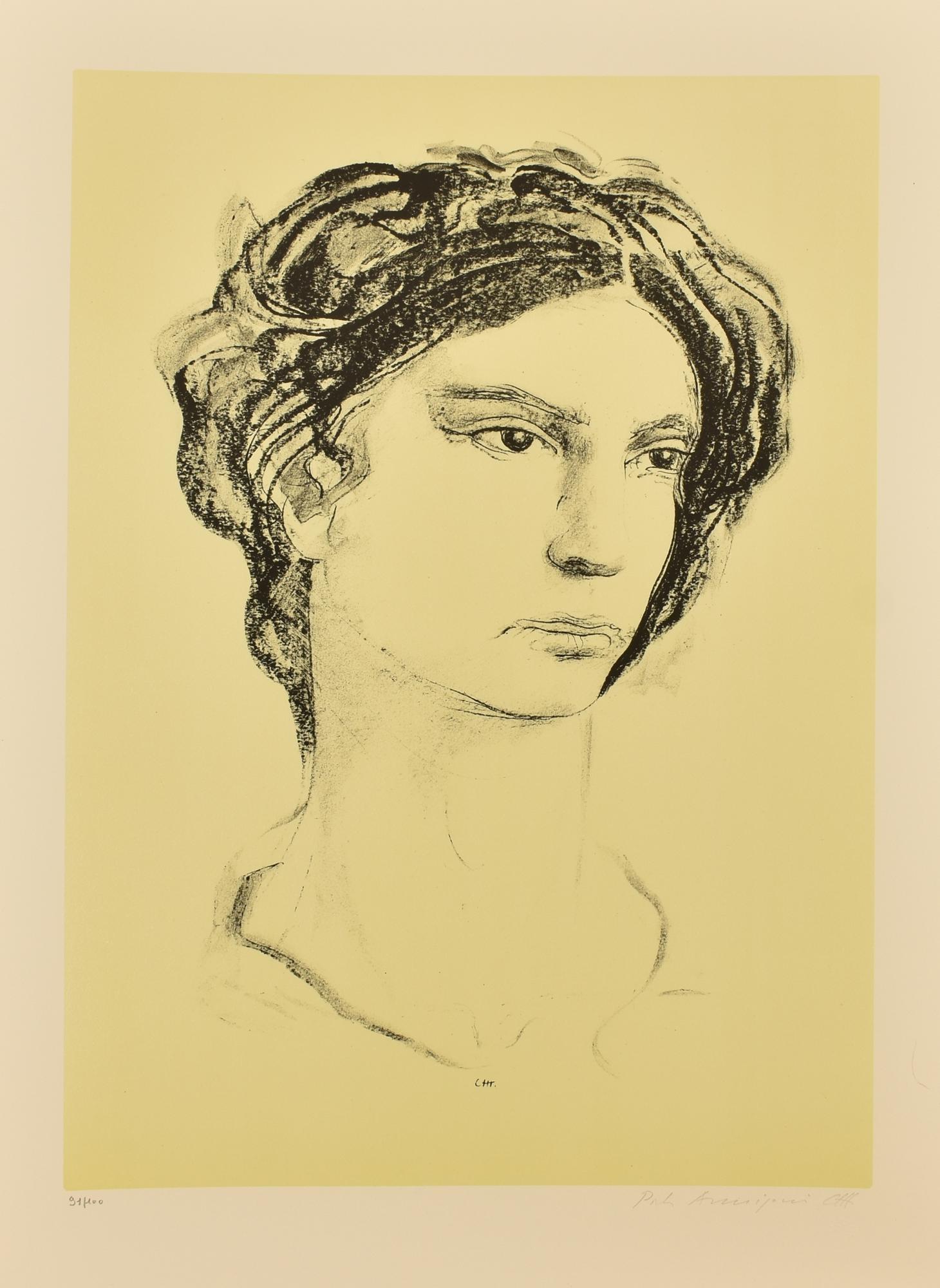 Pietro Annigoni RITRATTO litografia su carta, cm 70x50; es. 91/100 firma