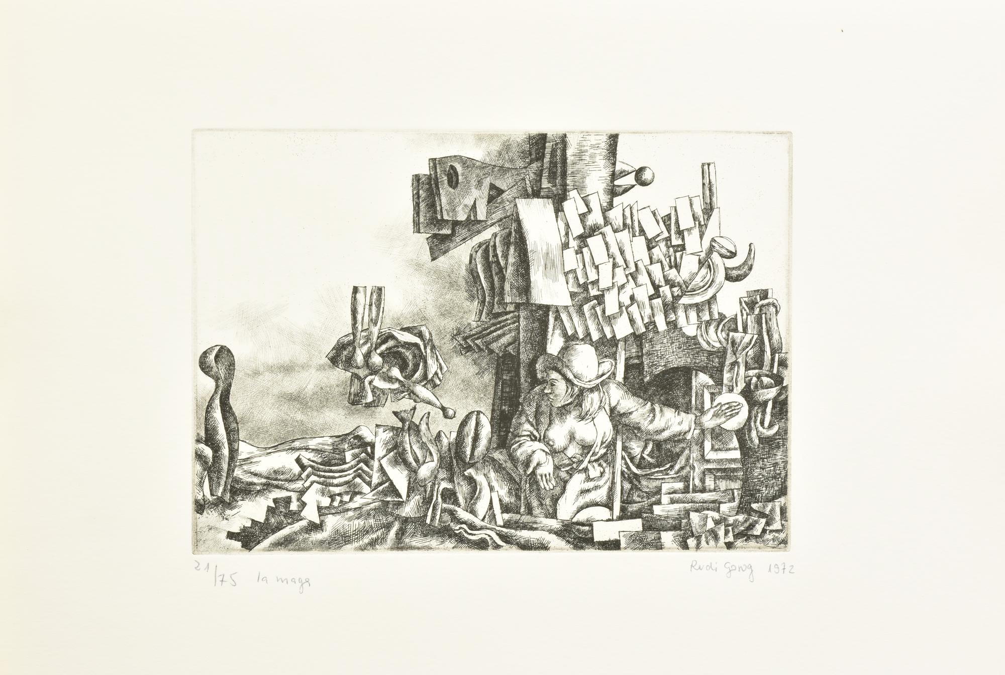 Rudi Gorog LA MAGA incisione su carta Fabriano, battuta cm 19,5x27,5, su...