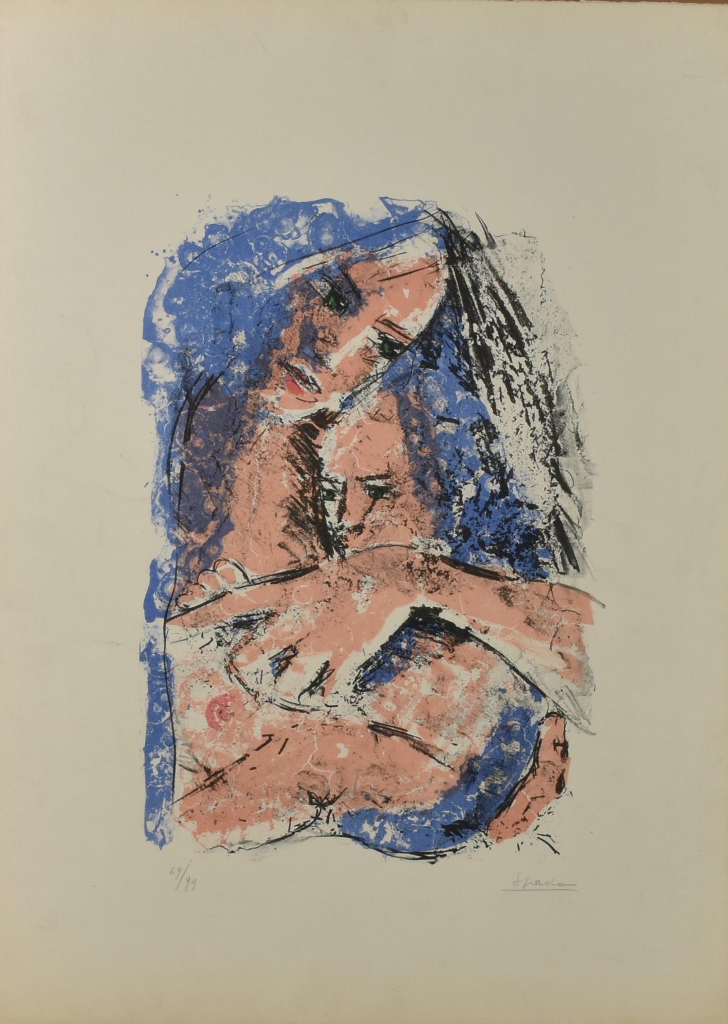 Paolo Spada L'ABBRACCIO litografia su carta, 70x90, es.69/99 firma e titolo...
