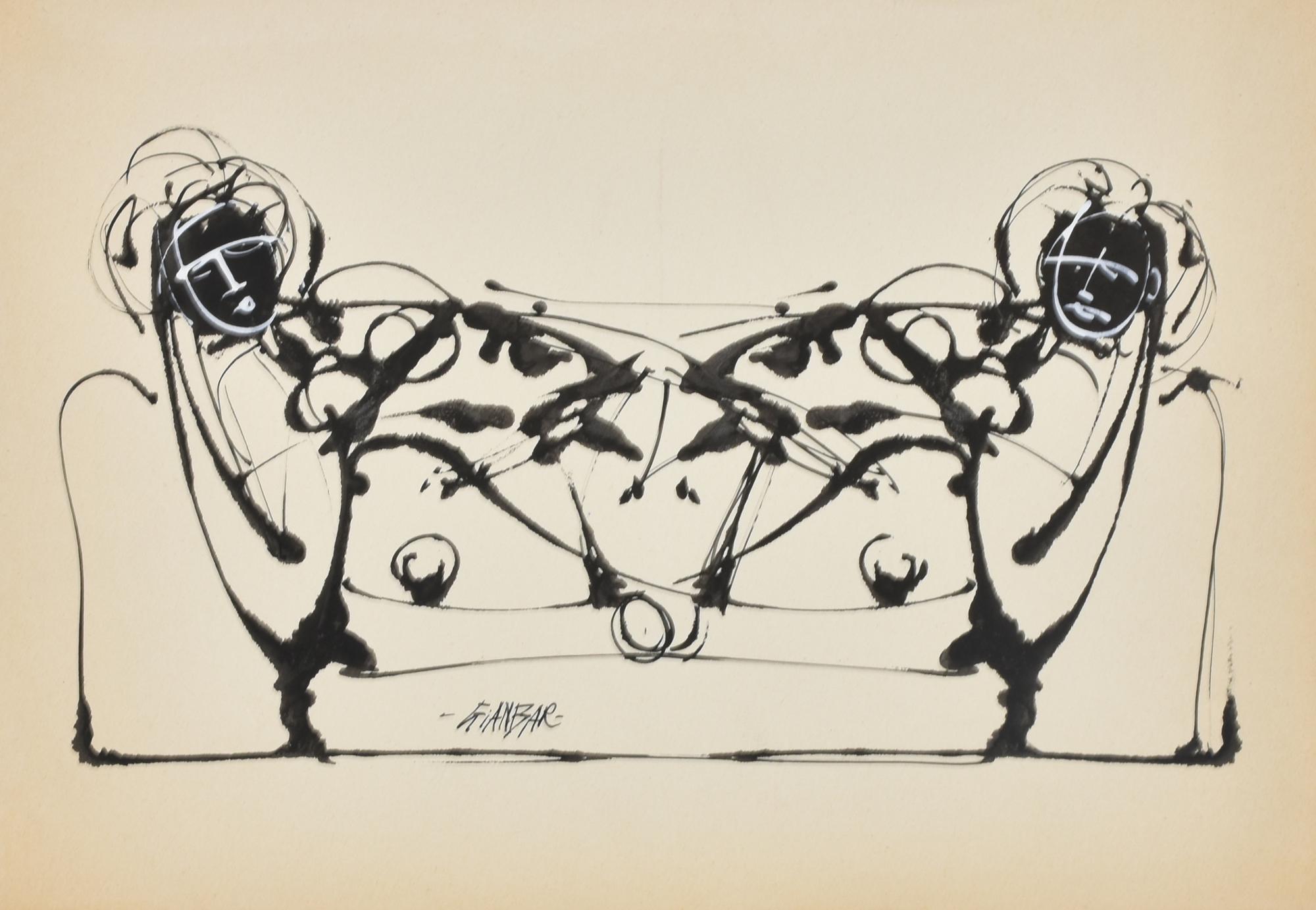 GIANBAR (Gianni Baretta) SUL DIVANO tecnica mista su carta, cm 35x50 firma...