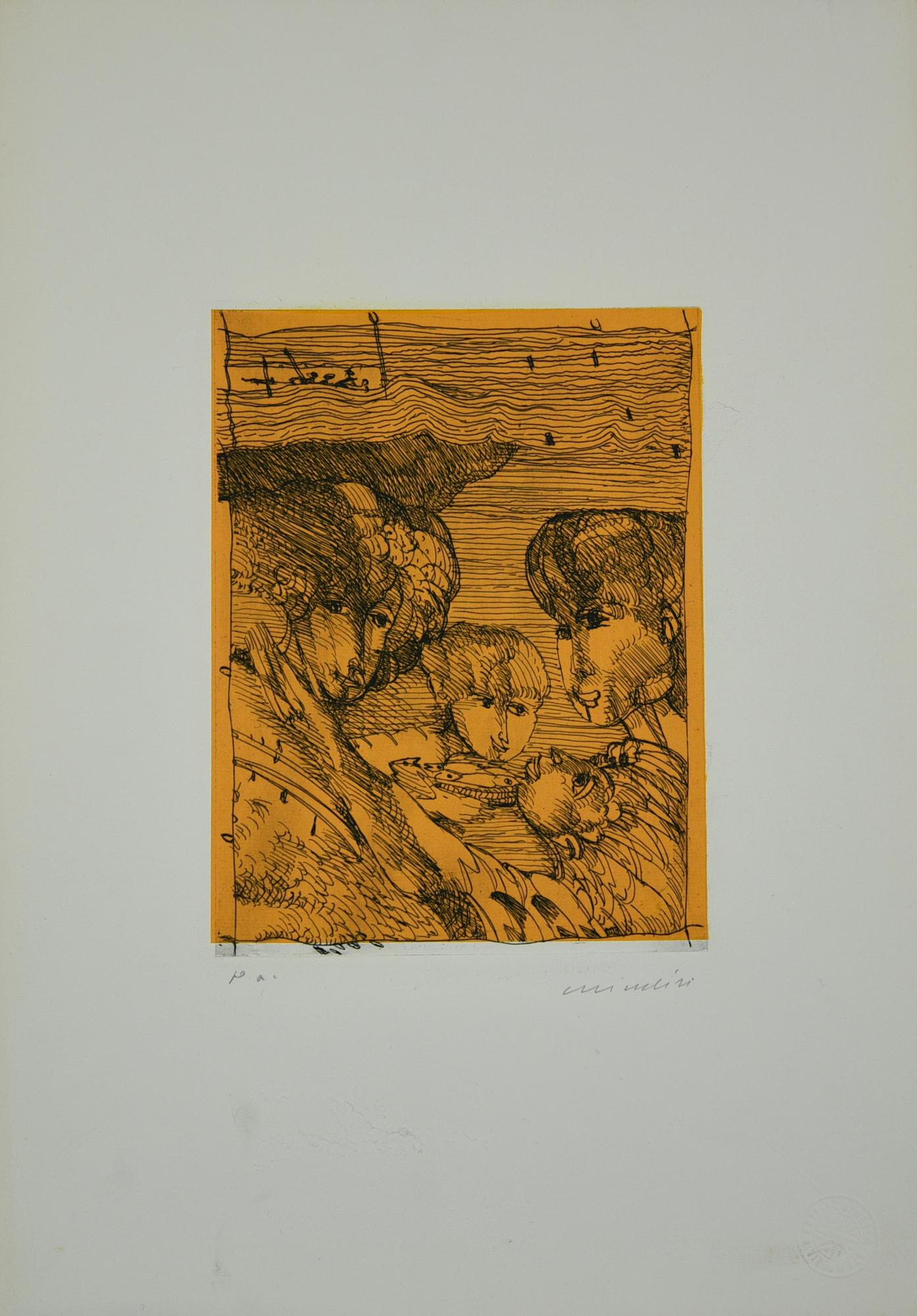 Remo Brindisi SENZA TITOLO acquaforte e puntasecca, cm 23,5x18, su foglio cm...