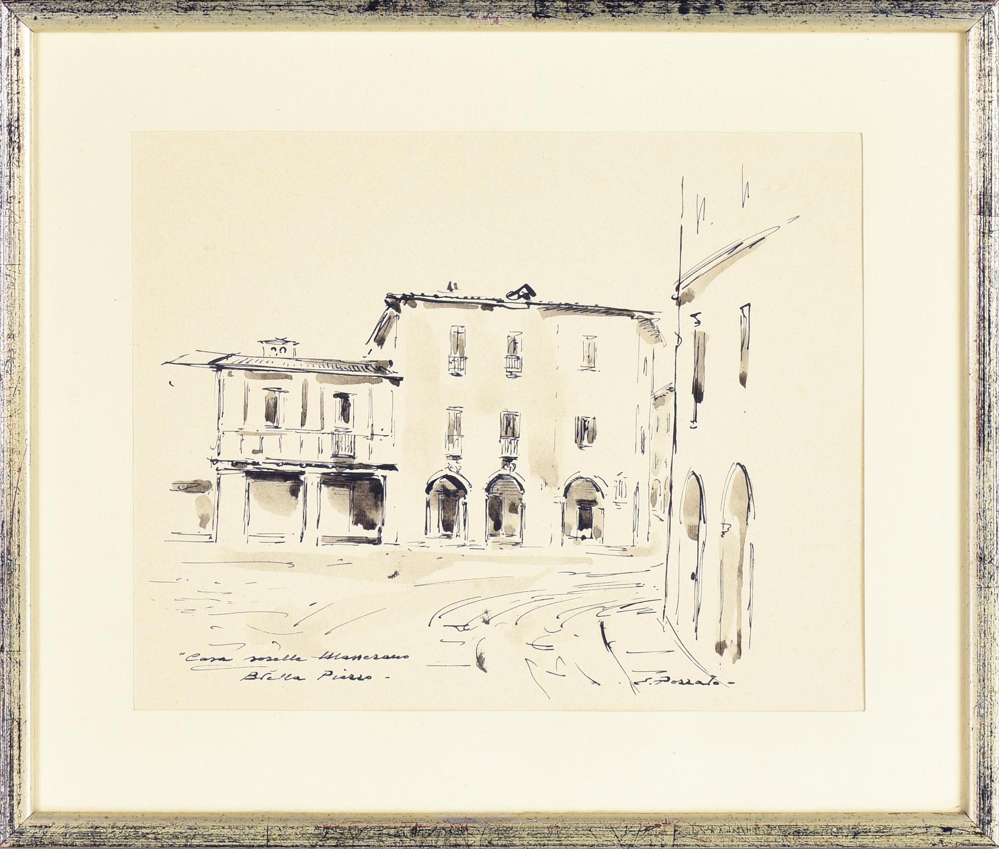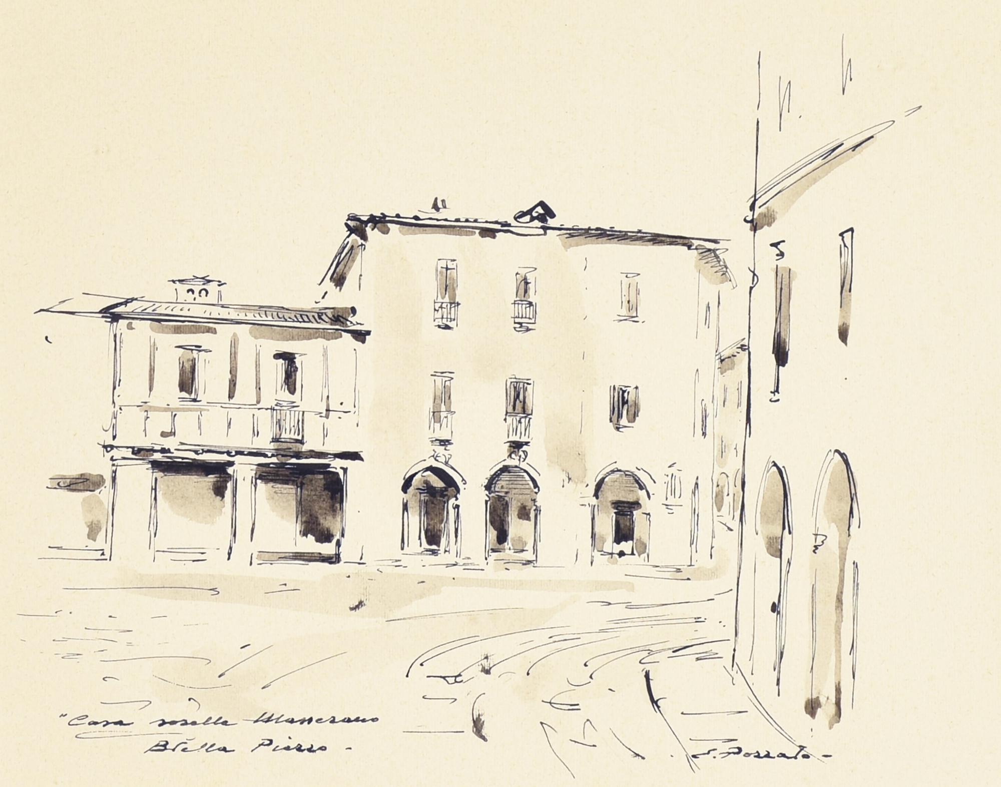 Epifanio Pozzato CASA SORELLE MASSERANO - BIELLA PIAZZO china acquarellata su...