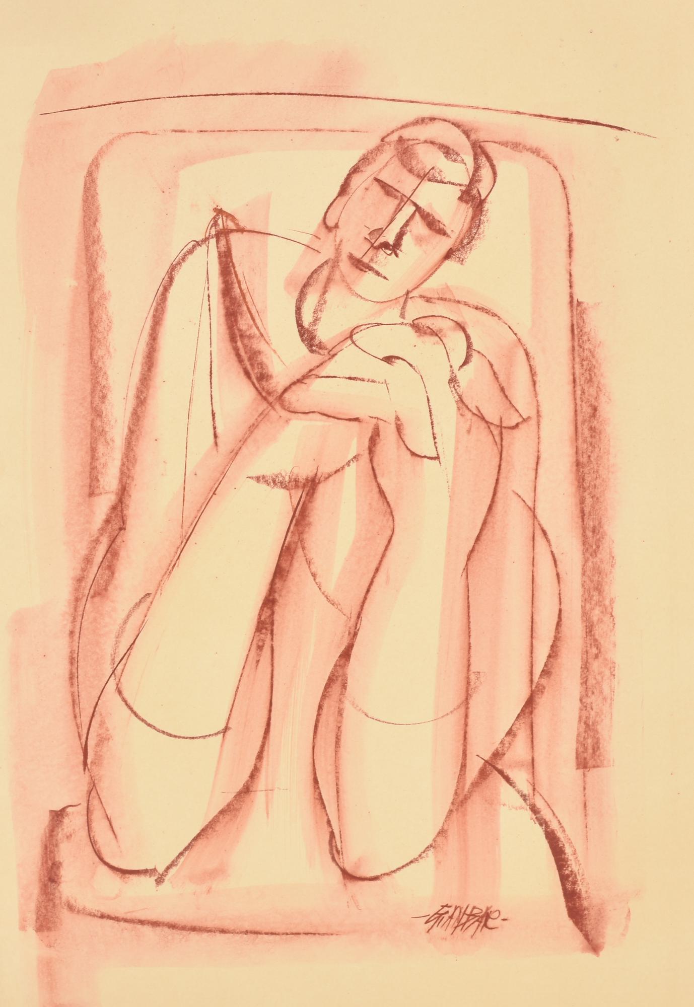 GIANBAR (Gianni Baretta) LA PREGHIERA tecnica mista su carta, cm 50x35 firma...