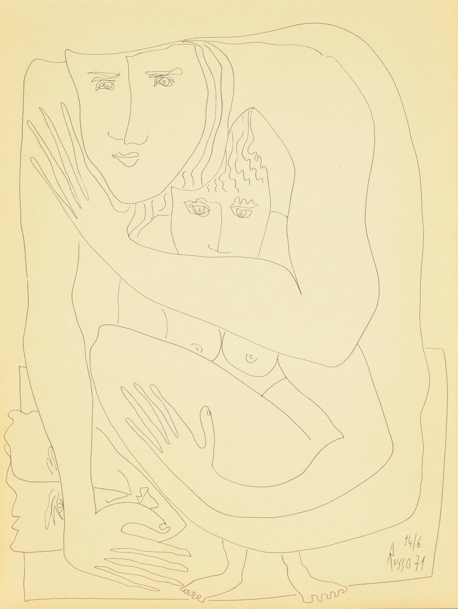 Russo ABBRACCIO pennarello su carta, cm 40x30 firma e data eseguito nel 1971