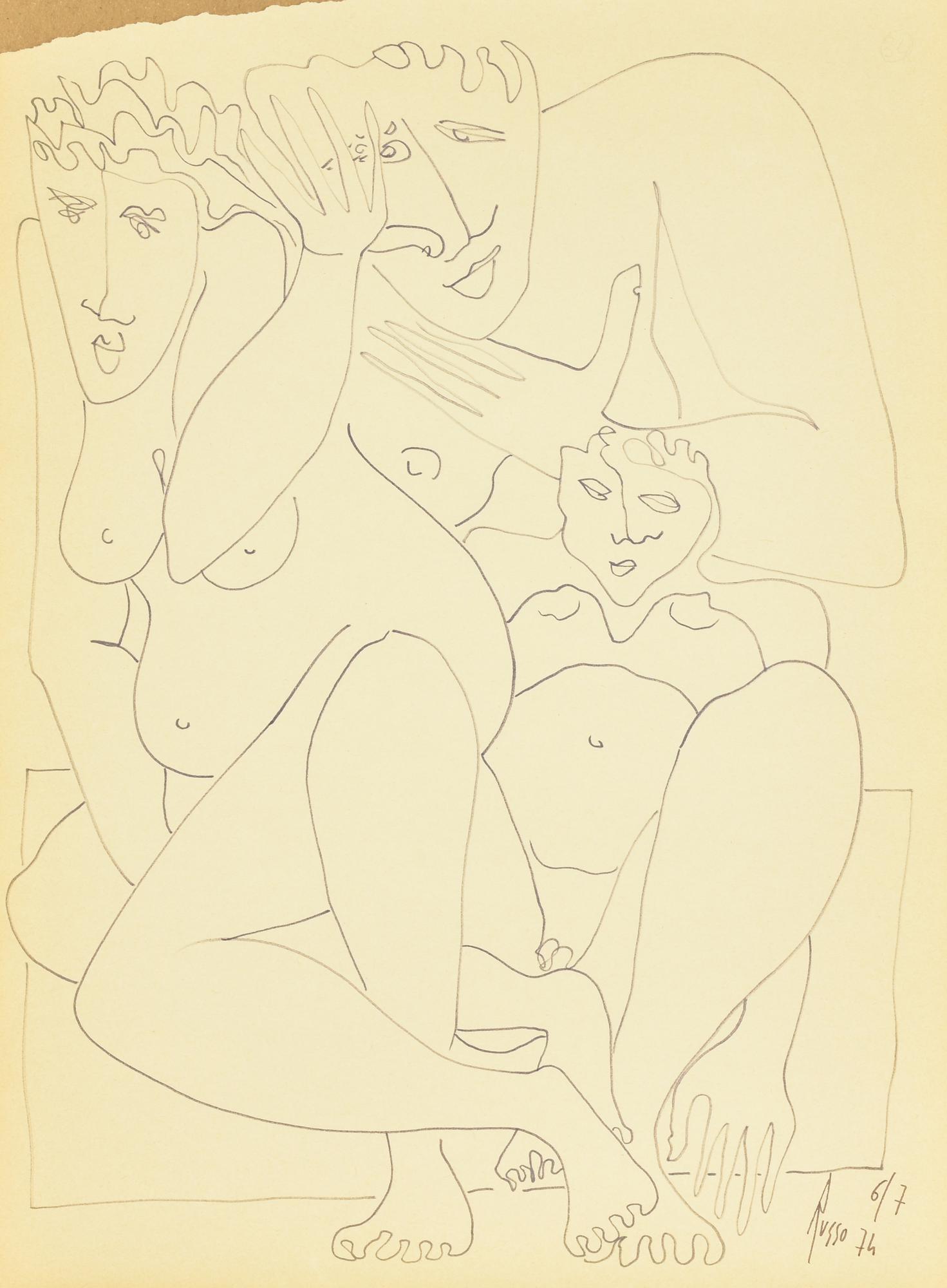 Lot 109 | Russo FAMIGLIA pennarello su carta, cm 40x30 firma e data eseguito nel 1974...