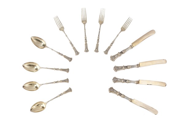 Servizio di posate in vermeil con decoro a mascheroni e volti muliebri composto