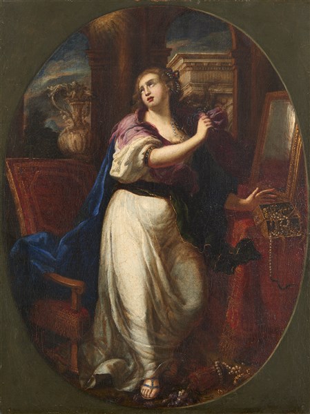Scuola del secolo XVIII "Scena biblica" olio su tela (cm 45x35) in cornice (di