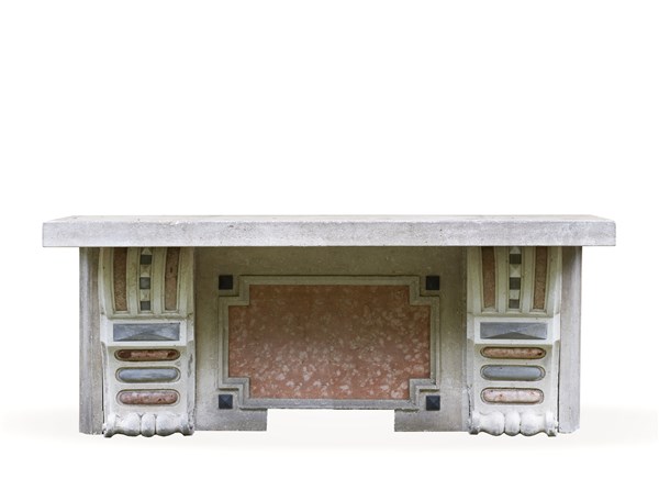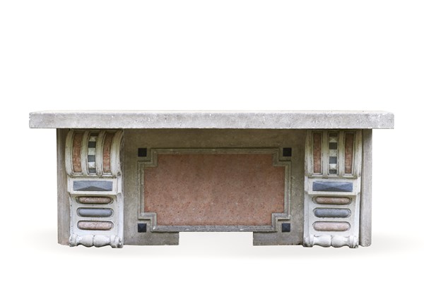 Pair of various marbles veneered benches (157x50 cm) (defects and breaks)