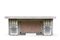 Coppia di panche con retro pannellato in marmi vari, lesene in rilievo terminan