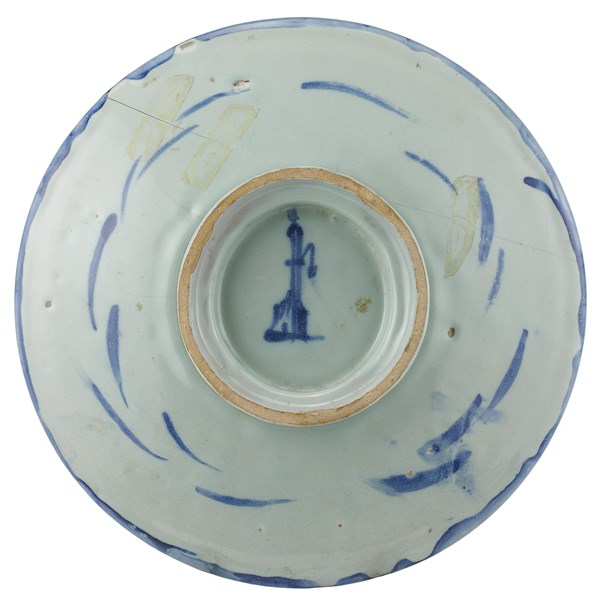 Manifattura ligure, secolo XVIII. Alzata in maiolica dipinta in monocromia blu