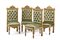 Gruppo di quattro sedie in legno intagliato e dorato a volute fogliate, fiori e