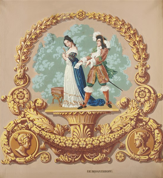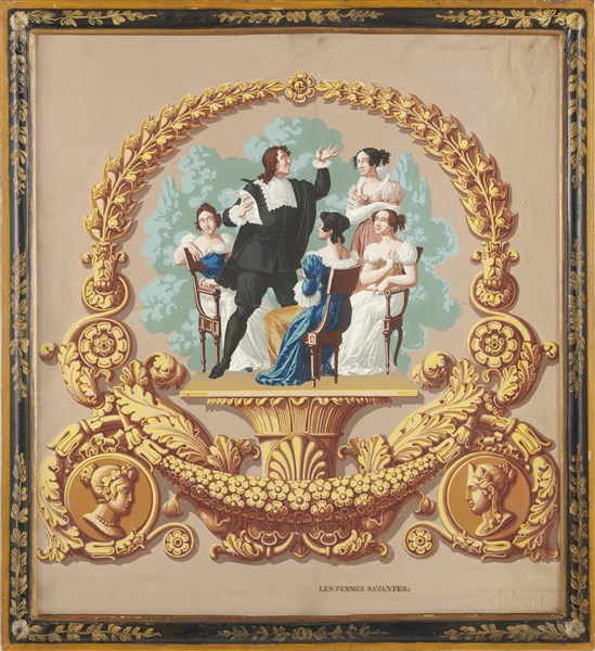 French School of the 19th century. Group of five papier peint paintings depicting subjects from the works of Molière (cm 80x70) In frames (defects)
