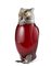 Versatoio in foggia di gufo con corpo in vetro rosso e occhi in pasta vitrea. Testa e artigli in argento titolo 925. Spagna, inizio secolo XX (h. cm 28 ca.) (difetti)
