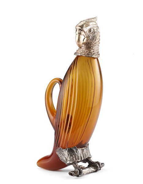 Ewer in the shape of a parrot with glass body and silver head and claws, title 925. Silversmith Drawers (h. cm 34) (minor defects)