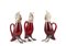 Gruppo di tre porta profumo in foggia di pappagalli con corpo in vetro rosso, t