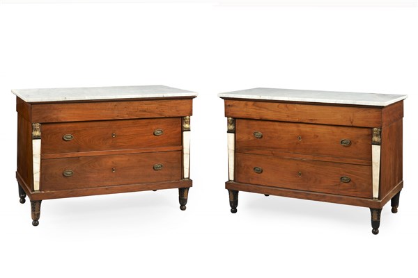 Pair of walnut Empire chests of drawers with marble top (cm 122x90x61) (defects and restorations)