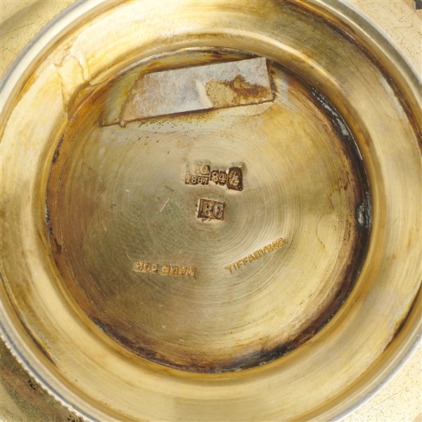 Gilt silver teapot richly decorated with views of the Cathedral of Christ the Saviour and Moscow's Red Square. Moscow, 1887. Silversmith Vasily Semenov. "MADE FOR TIFFANY & CO" engraved on the base in later period (h. cm 14) (g 460) (defects)