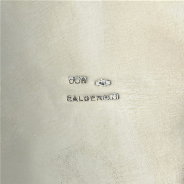 Silver centerpiece with dolphin-shaped feet. Title 800. Milan, silversmith Calderoni (cm 59x20x38) (g 3480) (defects)