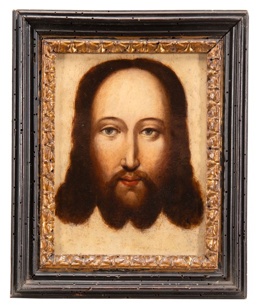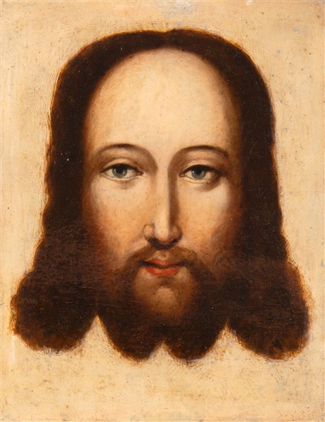 Scuola della fine del secolo XVII "Volto di Cristo" olio su rame (cm 22x17) in