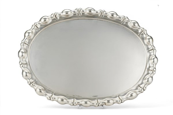 A large silver oval tray. Early 20th century (g 1600) (L. cm 58) (defects)
