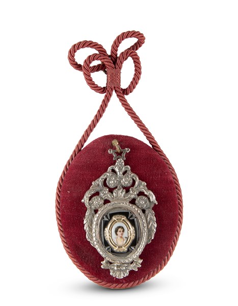 Lot 368 | Medaglione in vetro e porcellana raffigurante una fanciulla con cornice in arge