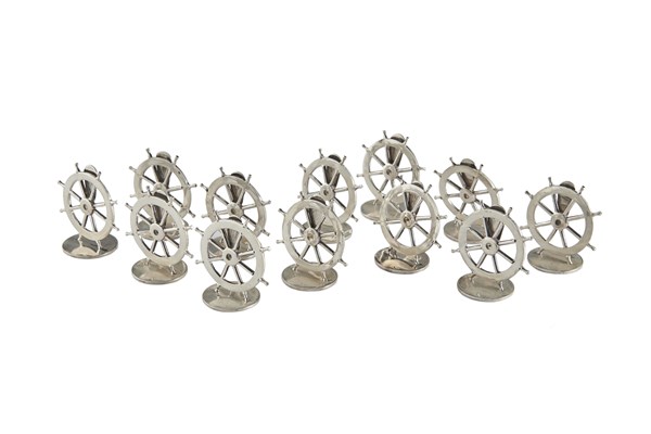 Gucci. Gruppo di dodici segnaposto in argento a guisa di timoni. Titolo 800 (h