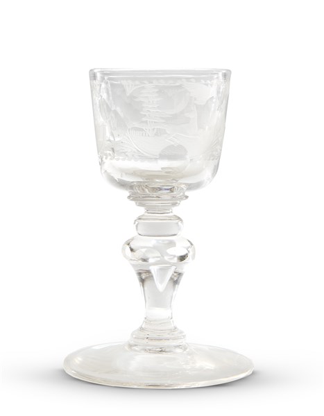 Lot 388 | Manifattura di Boemia, secolo XIX. Bicchiere in cristallo inciso con scene di c