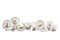European manufactures, late 18th century. Part of coffee service consisting of ten cups, nine saucers and a porcelain teapot decorated in polychrome (defects)