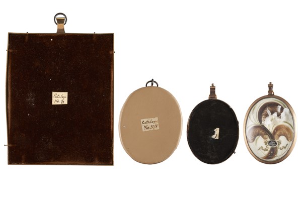 Arte del secolo XIX. Quattro diverse miniature su avorio raffiguranti gentiluom