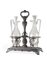 Silver cruet on a rectangular base, Milan, 19th century (g 560) with two glass ampoules with cap (h. cm 33) (minor defects)