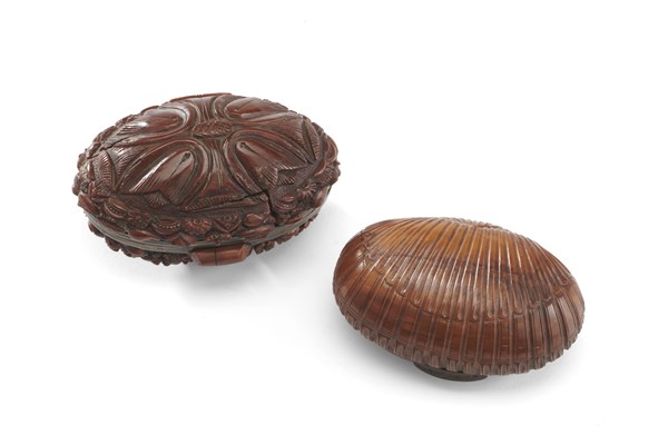 Arte del secolo XIX. Due tabacchiere in legno intagliato raffiguranti Napoleone