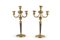 Coppia di candelabri in bronzo dorato e brunito a tre fiamme con sostegno rastr