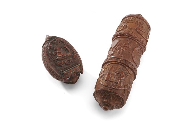 Arte del secolo XIX. Lotto composto da un porta aghi ed un seme scolpiti a putt
