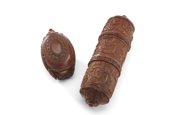 Art of the 19th century. Lot composed of a needle holder and a seed carved (L. max cm 14) (defects)