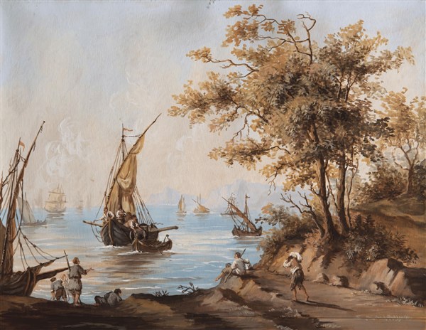 Scuola della fine del secolo XVIII "Marina con figure" tempera su carta (cm 25